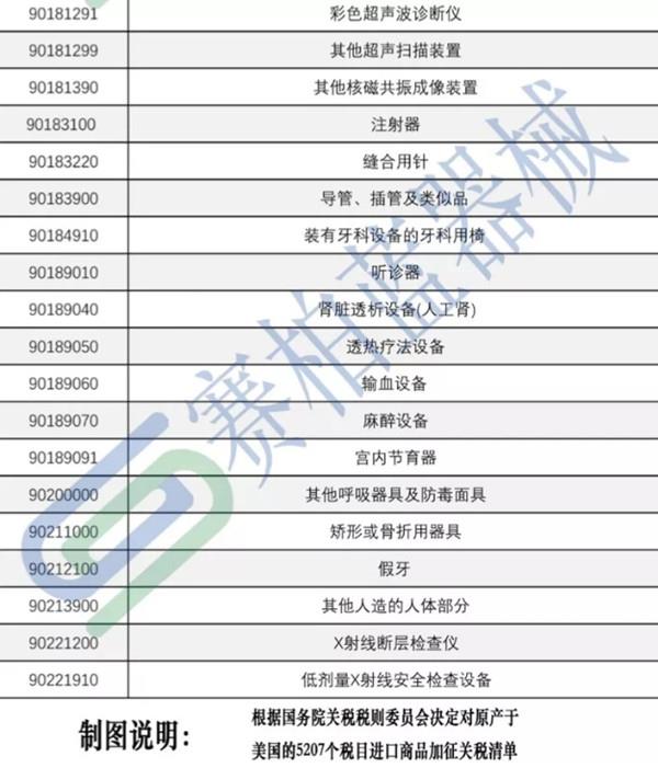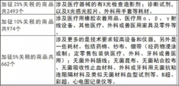 從國務(wù)院發(fā)布的公告來看,公告中提到的600億美元商品清單時(shí)發(fā)現(xiàn),涉及醫(yī)療器械的產(chǎn)品不僅有大型醫(yī)用設(shè)備儀器,同時(shí)也包括耗材和試劑。