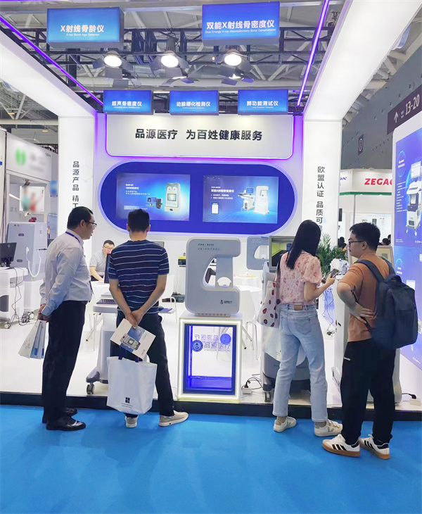 在這場醫(yī)療科技的盛宴中,品源醫(yī)療以其非凡的創(chuàng)新實(shí)力和精湛品質(zhì),成為了展會(huì)中的一顆璀璨明珠。此次展出的雙能X射線骨密度儀、超聲骨密度檢測儀、X射線骨齡儀、動(dòng)脈硬化檢測儀以及肺功能測試儀系列產(chǎn)品,憑借著檢測精準(zhǔn),人性化的設(shè)計(jì)理念以及舒適、便捷的檢測體驗(yàn),吸引了眾多國內(nèi)外客商和專業(yè)人士的目光。