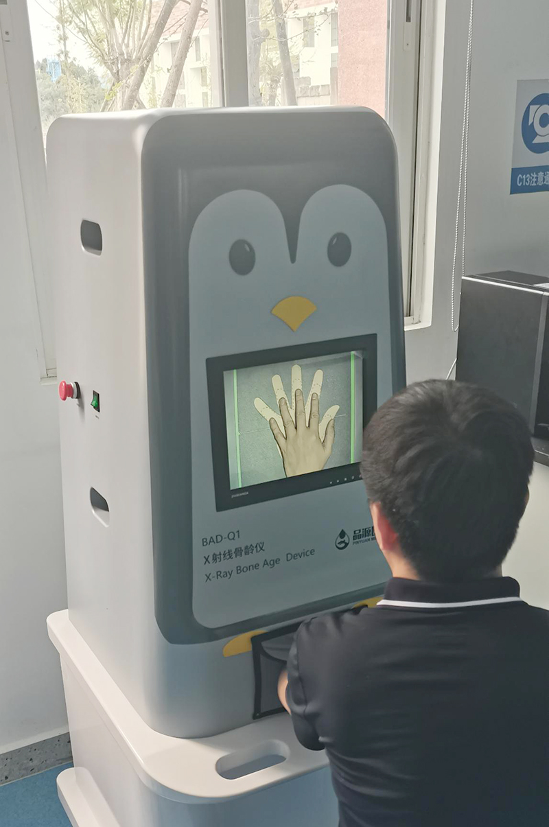 品源醫(yī)療X射線骨齡儀的便捷操作體驗也為日常使用帶來便利。配備的手部限位圖、監(jiān)控屏監(jiān)控擺位以及軟件視頻監(jiān)控功能組成的三方位定位系統(tǒng),能幫助操作人員快速、準確地定位檢測區(qū)域,減少重復拍攝,提升檢測效率。雙監(jiān)控顯示窗口的設(shè)計,使操作人員與被檢者可同步觀察擺位情況,增強檢測過程的透明度與互動性。此外,BAD-Q1采用企鵝造型的卡通化外觀設(shè)計,色彩柔和,兒科專用參數(shù)設(shè)置避免過度曝光,充分考慮受檢人群心理與生理特點,緩解在檢測時的緊張情緒,保障檢測的安全性與舒適性。