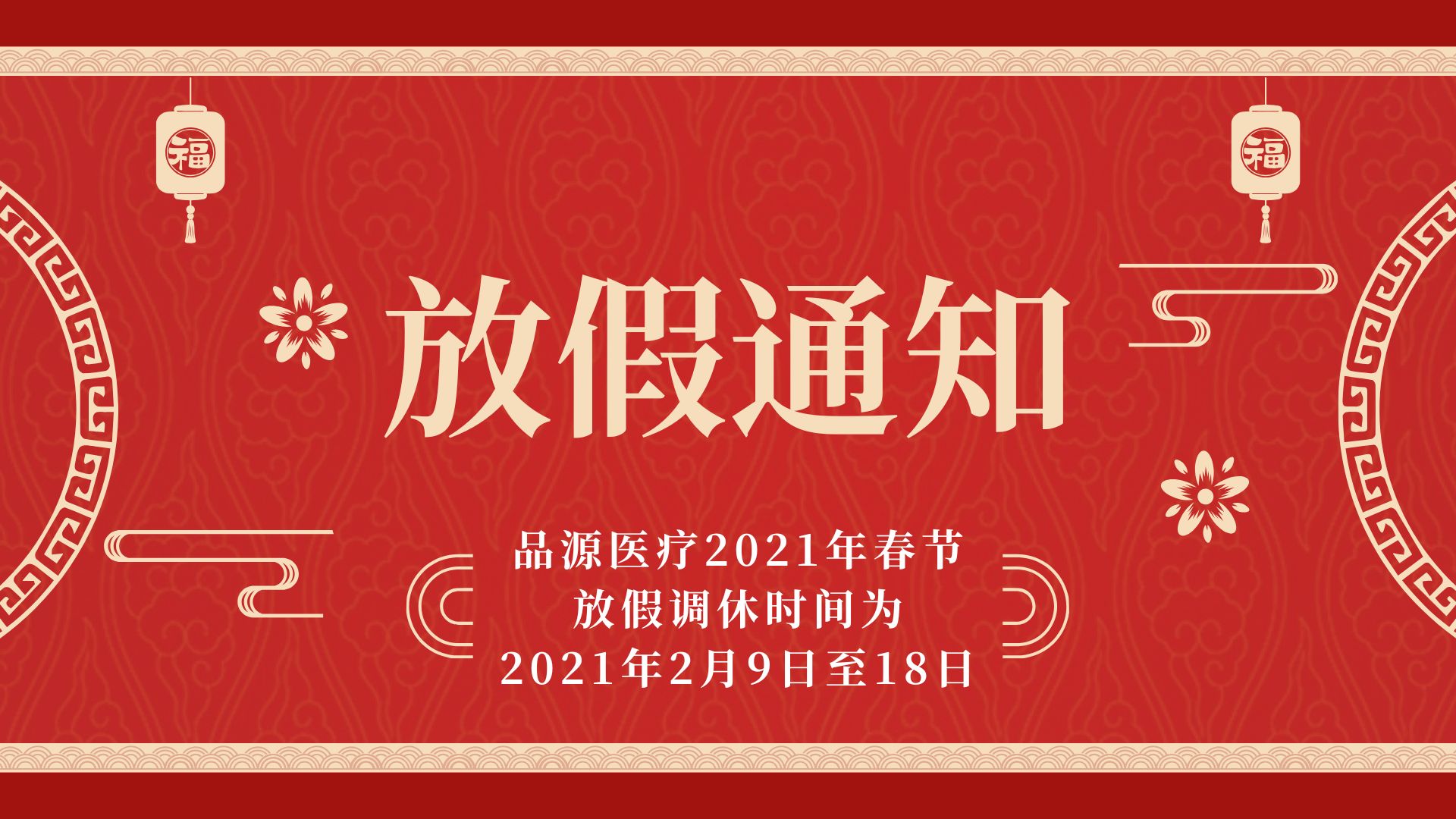 品源醫(yī)療2021年春節(jié)放假時(shí)間:2月9日-2月18日,2月19日(大年初八)上班,預(yù)祝各位合作伙伴新年快樂(lè),牛年大吉!