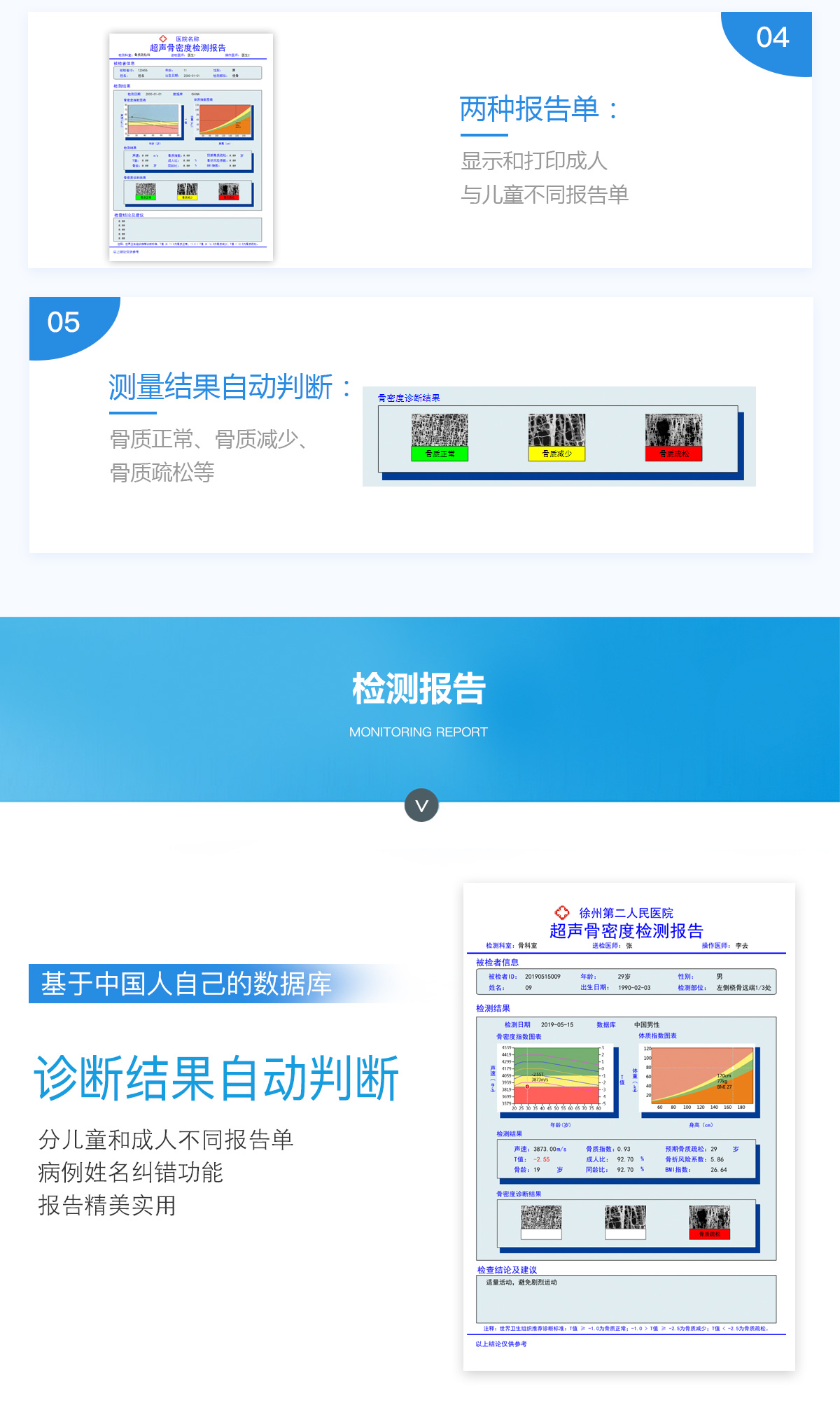 ■ 軟件優(yōu)勢::BMD-A系列超聲骨密度檢測儀一臺儀器裝配有智能分析系統(tǒng),經(jīng)濟實用??蓽y量0-100歲人群。