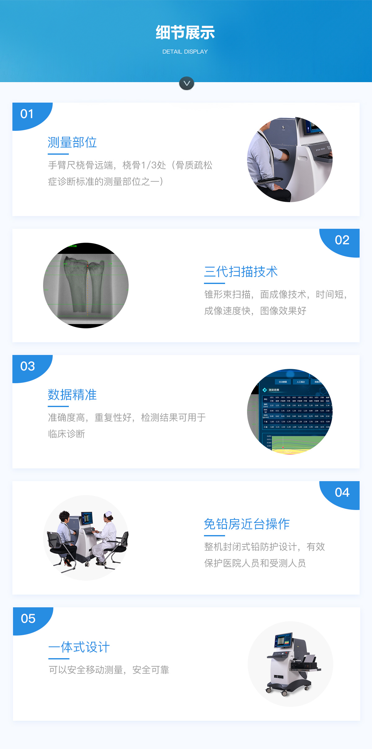 DXA- 800F 雙能X線骨密度檢測儀測量骨密度,準(zhǔn)確度較高,重復(fù)性較好,是醫(yī)生臨床診斷好幫手。